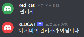 먼저 서버의 관리자인지 확인하는 명령어를 만들어보자. 아래의 사진처럼 코드를 작성해 보자.