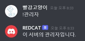 먼저 서버의 관리자인지 확인하는 명령어를 만들어보자. 아래의 사진처럼 코드를 작성해 보자.